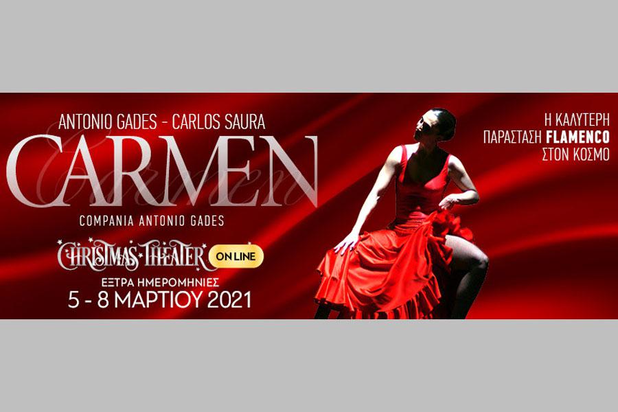 Carmen ANTONIO GADES – CARLOS SAURA Compañía Antonio Gades Βασισμένη στη νουβέλα του Prosper Mérimée. Σενάριο, χορογραφία, σχεδιασμός φωτισμών: Antonio Gades, Carlos Saura Σκηνικά: Antonio Saura Μουσική: Antonio Gades, Antonio Solera, Ricardo Freire, Georges Bizet («Carmen»), Manuel Penella («El gato montés»), José Ortega Heredia/Federico Garcia Lorca («Verde que te quiero verde»). Παγκόσμια πρεμιέρα: 17 Μάϊου 1983, Παρίσι.