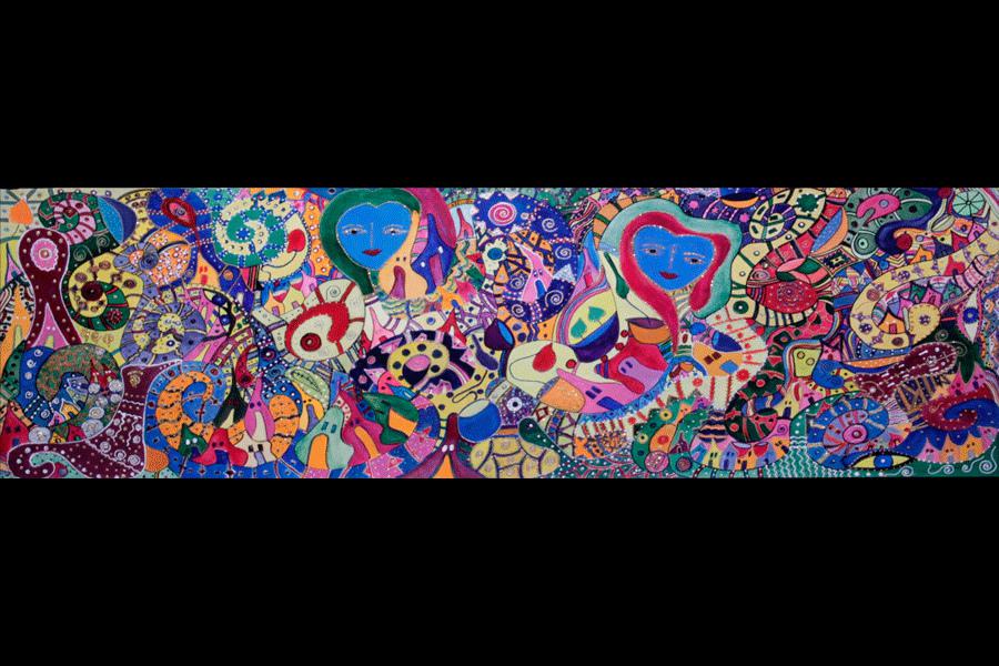 άνθρωποι κομμάτια ενός συνόλου που περικλείει το γήινο και το μεταφυσικό, την πολυμορφία των διαστάσεων, με συμβολισμούς αρχέγονους, σε οδηγεί μέσα από μια πανδαισία χρωμάτων σε κόσμους της ψυχής, της καρδιάς και της γνώσης.